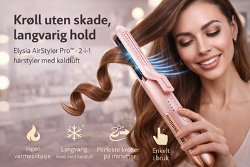 • 💨Reduserer varmeskader– mer skånsom styling enn tradisjonelle rettetenger